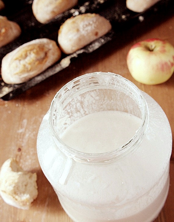 Dzisiejsza wersja zakwasu to pszenny zakwas z dodatkiem jabłka. Jabłko można również dodać do żytniego zakwasu…chociaż mój żytni zakwas działa energicznie i bez jabłka.