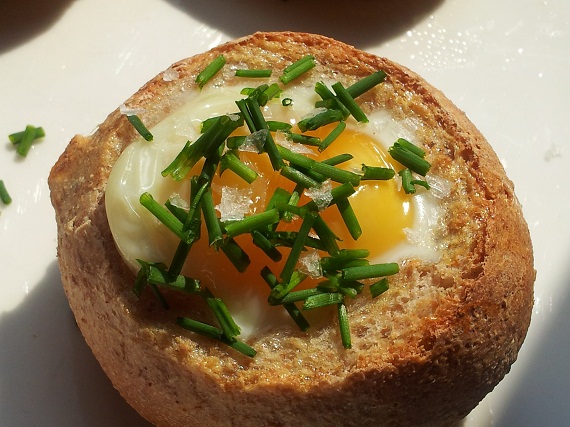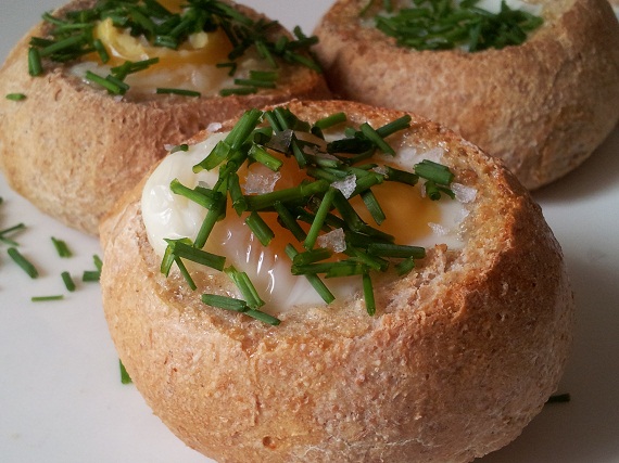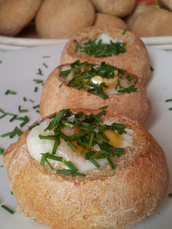 Zamarzyły mi się jajka na śniadanie, więc dlaczego nie wypełnic bułki jajkiem i podpiec. Długo się nie namyślałam i po 15 minutach moje śniadanie było już gotowe. Trochę szczypiorku, soli i już po pierwszym kęsie byłam wniebowzięta.