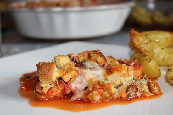 Ten przepis na pewno przypadnie wam do gustu. Latwy do zrobienia z produktów ogólnie dostępnych na polskim rynku. Smaczna zapiekanka z kurczaka z mozzarella i parmesanem, dodatkowo zapieczona z drobno pokrojonymi grzankami.