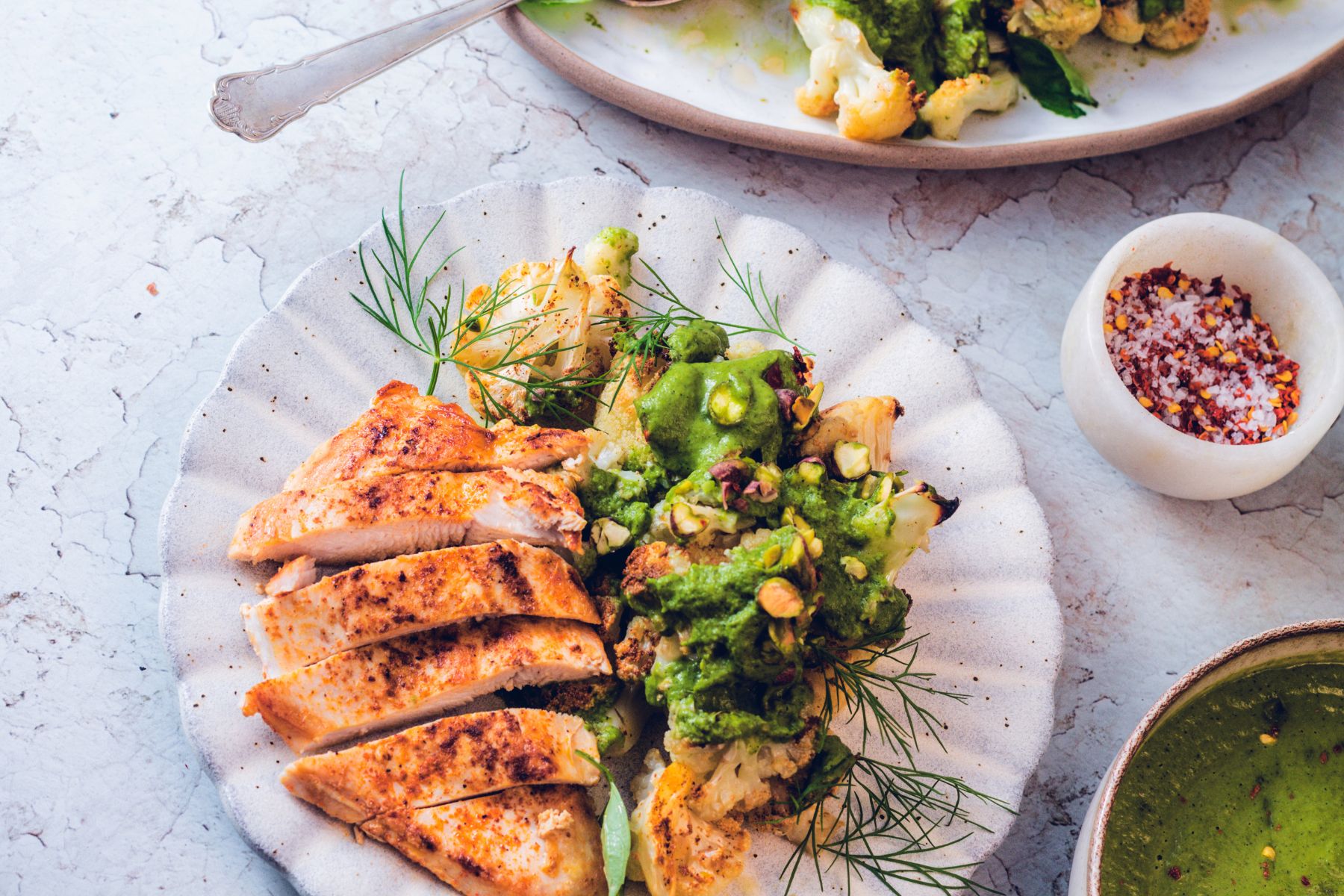 Jeśli jednak wolicie wersję wegańską, to z pewnością zadowoli Was porcja pieczonego kalafiora polana tym pysznym sosem i posypana chrupiącymi pistacjami. Prosto, zdrowo i bardzo smacznie!