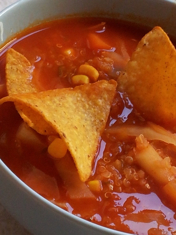 Do meksykańskiej zupy podaję kukurydziane chipsy.