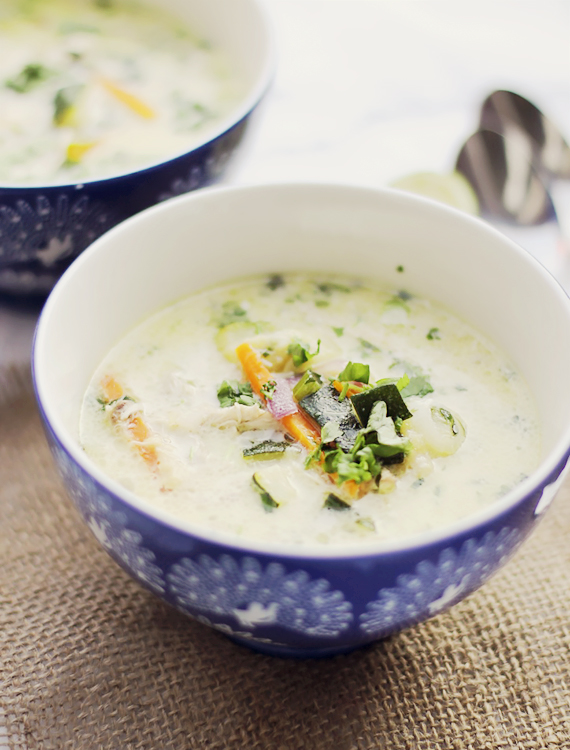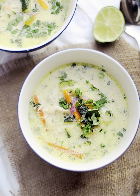 Pyszna zupa warzywna z kurczakiem i kokosowym mlekiem…Bardzo często gotuję zupy z kokosowym mlekiem. Zupa jest wtedy delikatnie słodka o lekkim kokosowym posmaku. Podprawiam zupę rybnym sosem i tajską soją, co świetnie harmonizuje z warzywami i kurczakiem.