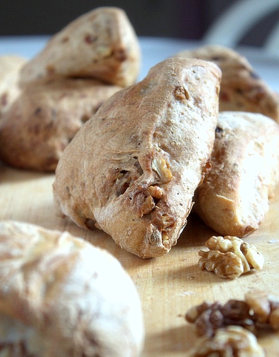 Przepis na żytnie bułki z orzechami włoskimi i rodzynkami